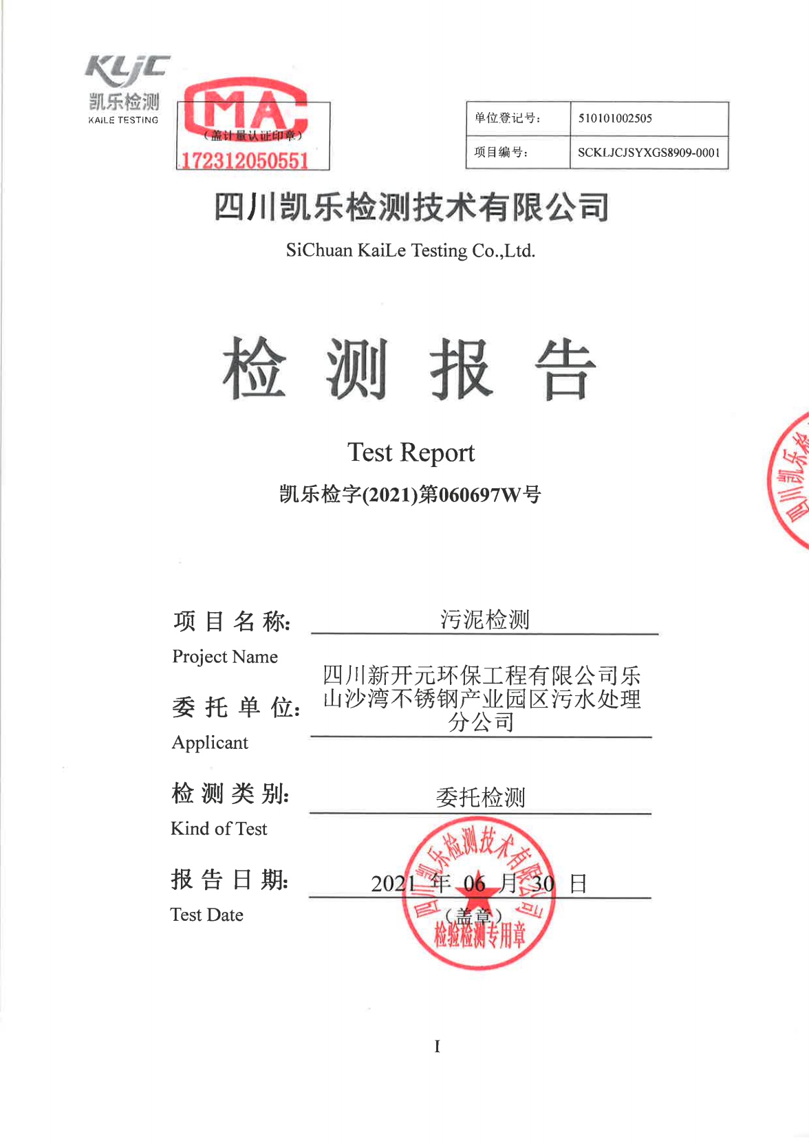 乐山沙湾不锈钢产业园区污水处理分公司污泥情况公布